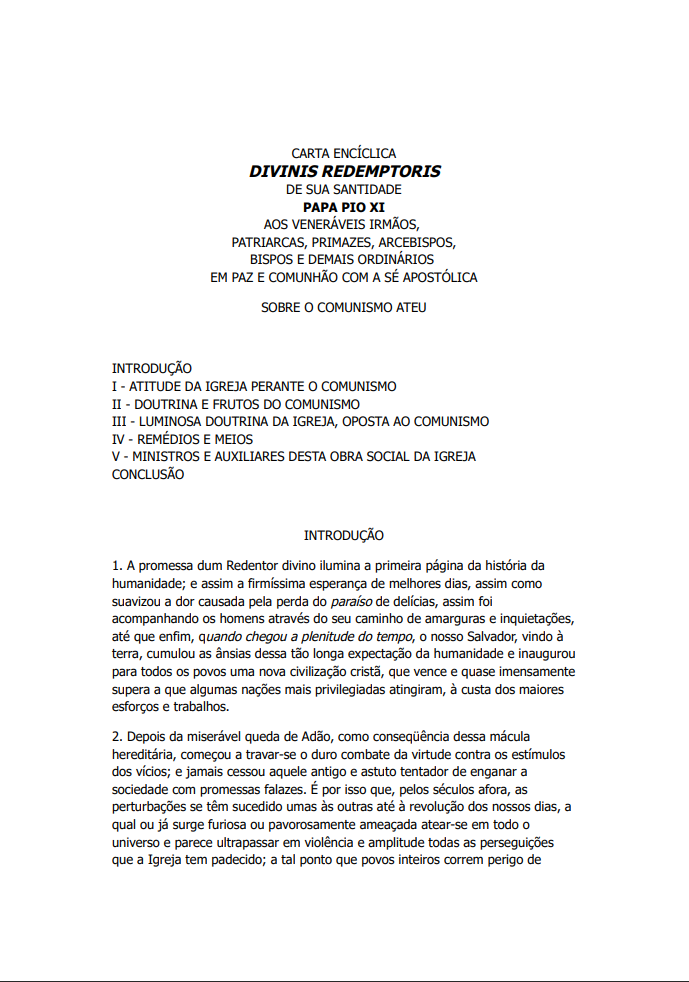 Divinis-Redemptoris - sobre o Comunismo Ateu - PIO XI