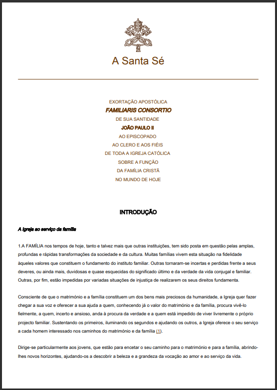 EXORTAÇÃO APOSTÓLICA FAMILIARIS CONSORTIO