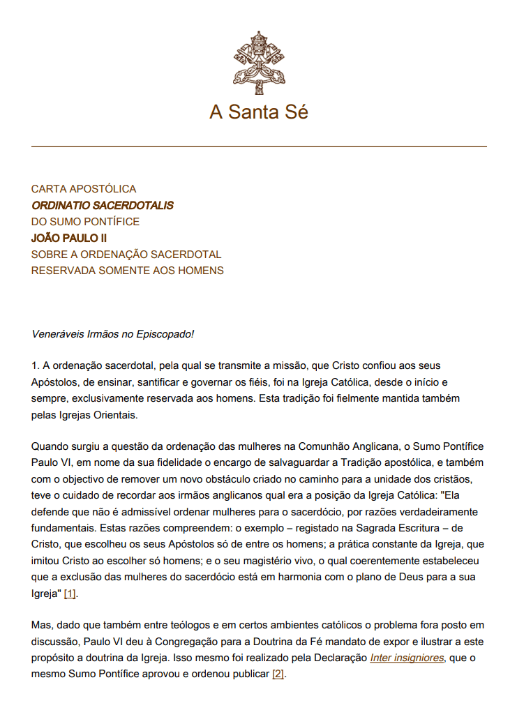 SOBRE A ORDENAÇÃO SACERDOTAL (ORDINATIO SACERDOTALIS)